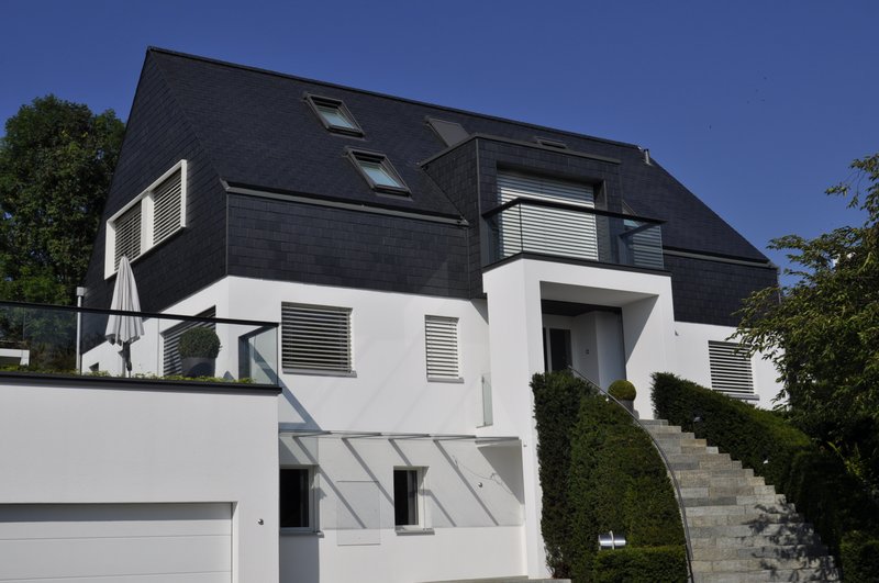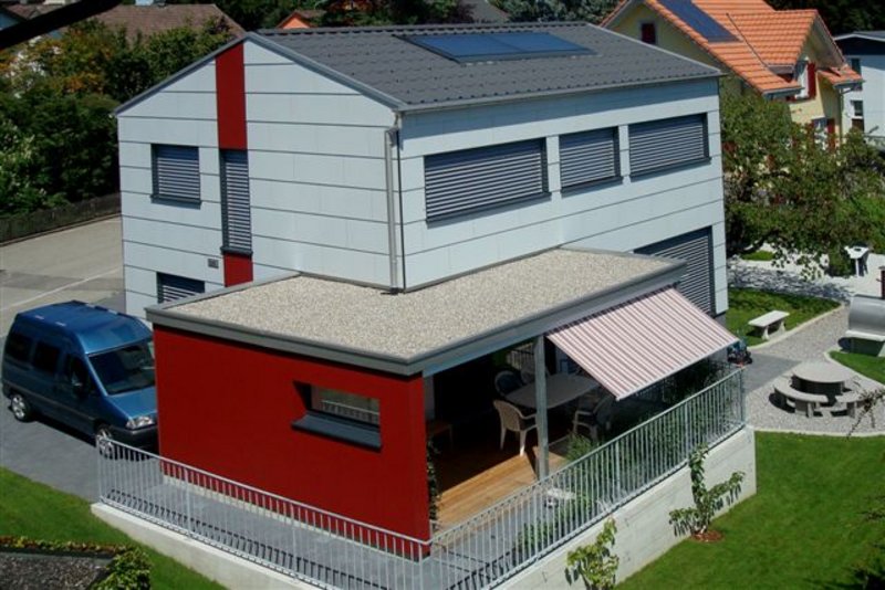 Steildach, Flachdach, Fassade.